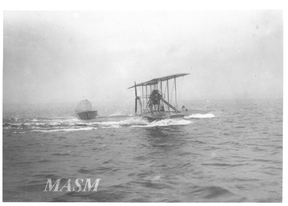 It was somewhat smaller than the Model K Flying Boat. It had wing struts staggered as in the Model K and the fuselage was custom fitted for the large Anzani radial engine. The Model L had a price of $10,000. This two place tandem aircraft was powered by a 20 cyl, 220 hp radial engine weighing 968 lbs, with a Burgess four bladed 8'4' propeller. The engine was supplied by Collier and had a maximum speed of 75 mph. The upper span was 41'4", lower was 33'4", the wing area was 373 sq ft, length 28'/30'6" overall, chord 5'6", gap 6'8.5" and had a gross weight of 2,050 lbs.